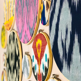 Abrbandi fiber art is the manifestation of the artistic and technical virtuosity of the silk designers, dyers and weavers of Uzbekistan, adorned for its uniqueness and specialty. As stunning to look at as challenging to make, no wonder they have historically been symbols of status because of the skill and time their production required. These played many important economic and social roles throughout the history when robes & hangings were given payment for services rendered, as dowry and bride price, and as highly esteemed gifts. Beyond the border of Central Asia, ikat textiles had political value in diplomatic exchange as gifts between rulers. For peoples outside Central Asia, as well as for travelers and colonists in the region, ikat fabrics came to symbolise the exotism of this part of the world.
